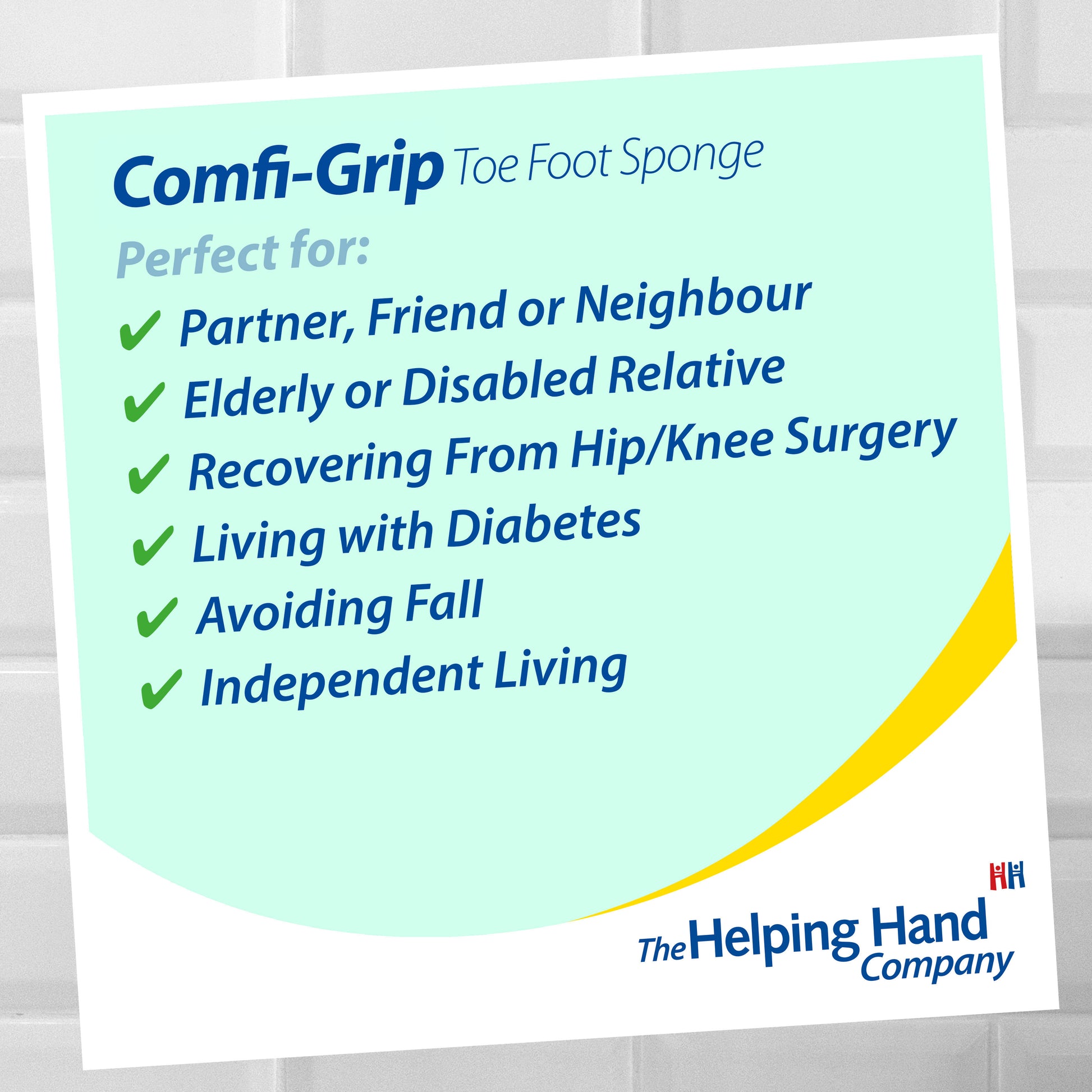 Looking after your feet is important, especially if you have diabetes. Treating common foot problems – such as corns, calluses, bunions and ingrown toenails – can help to prevent problems that make you unsteady on your feet and at risk of a fall. Treat your feet to a little pamper with our long handled toe and foot sponge. Lather up with your favourite shower gel and use the contoured base of the sponge to wash the soles of your feet. The tapered top of the sponge will get in between your toes and clean effectively, leaving your feet feeling cleansed, invigorated and refreshed.