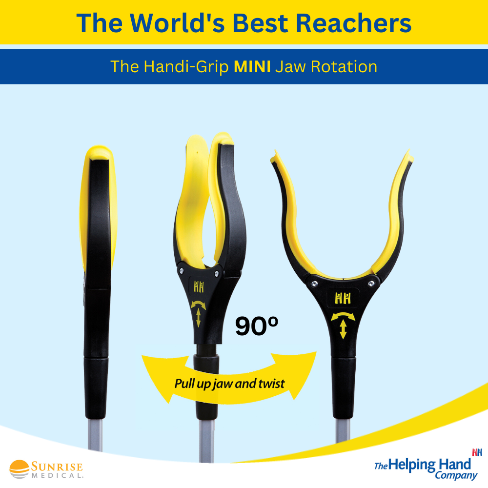 Just like a human hand, the Handi-Grip MINI grabber tool picks up every day objects around the home just like your own finger and thumb. Do you have limited mobility in your hands? The Handi-Grip features a 90 degree unique rotating head/claw, taking the strain out of the wrist. Simply pull out, twist and return.