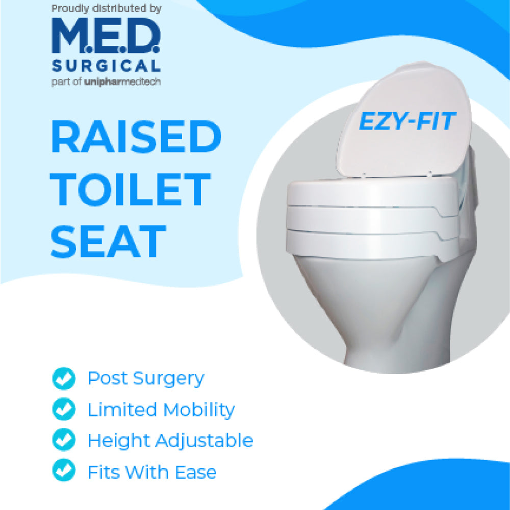 The EZY-FIT® Raised Toilet Seat is designed to make toileting safer, more comfortable, and easier for individuals with reduced mobility, seniors, and those recovering from surgery or injury.